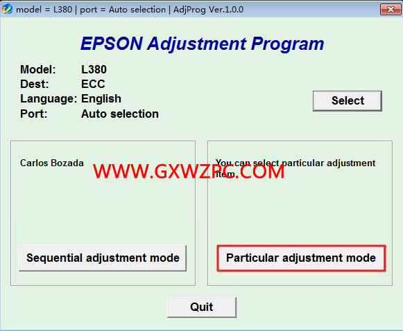 L380廢墨清零軟件使用方法:
